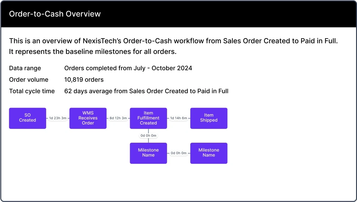 Use Chassi to run a finance-grade assessment. Model Lead-to-Cash from CRMs and ERPs, reconcile the numbers, and walk in with a quantified baseline and a ranked plan your team can execute. Clarity in days with minimal client lift.