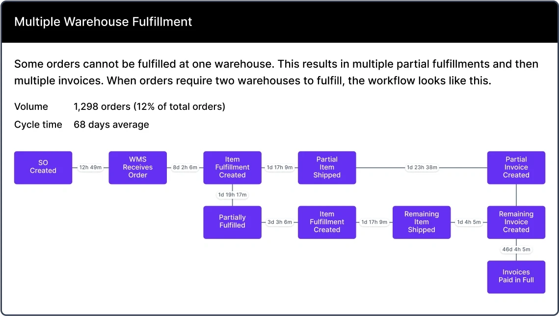 O2C and P2P pathways with cycle times and variance